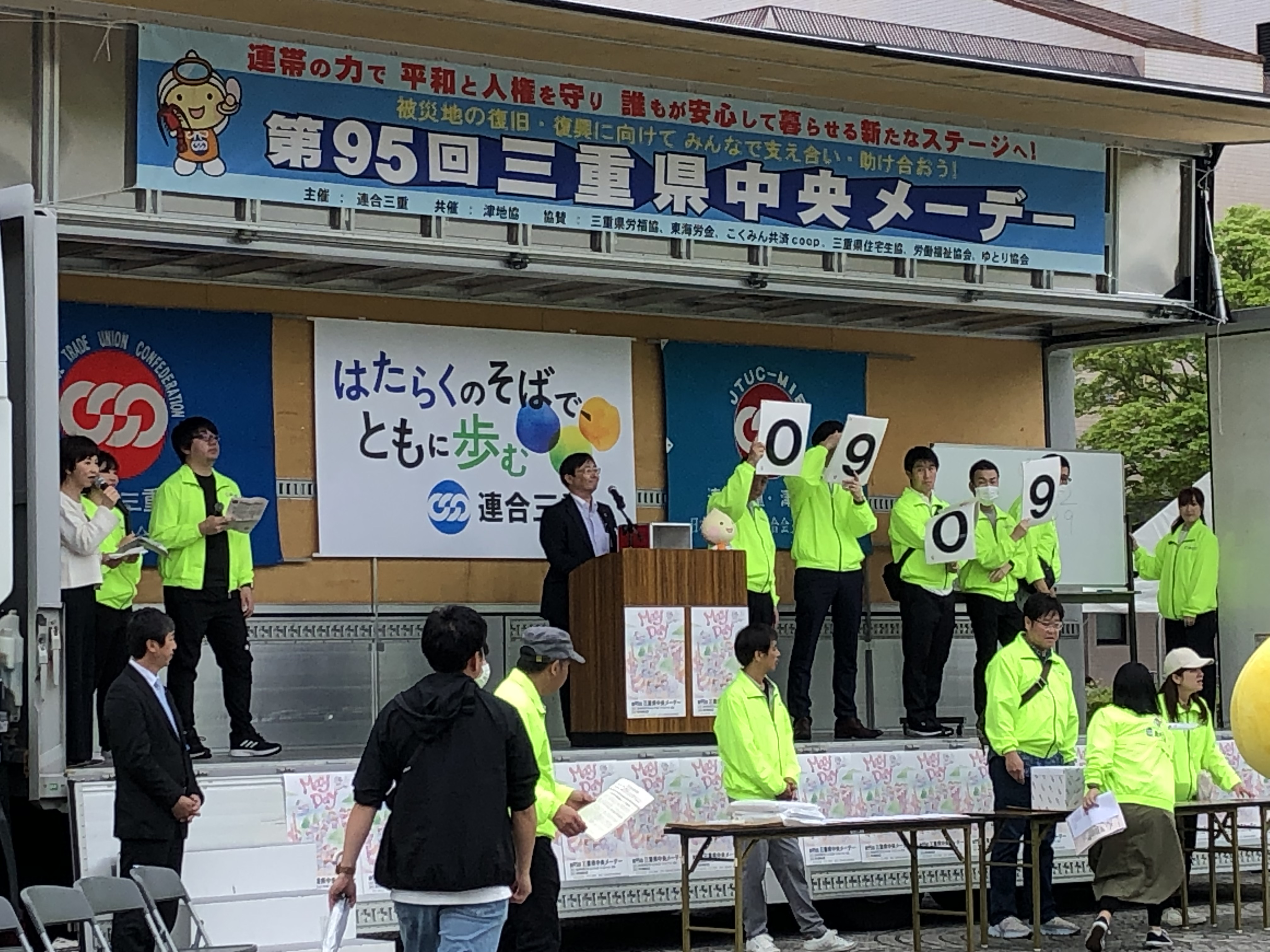 4月27日、津市「お城西公園」において連合三重と津地域協議会の共催による第95回三重県中央メーデーを開催し、組合員約1,100人が結集しました。