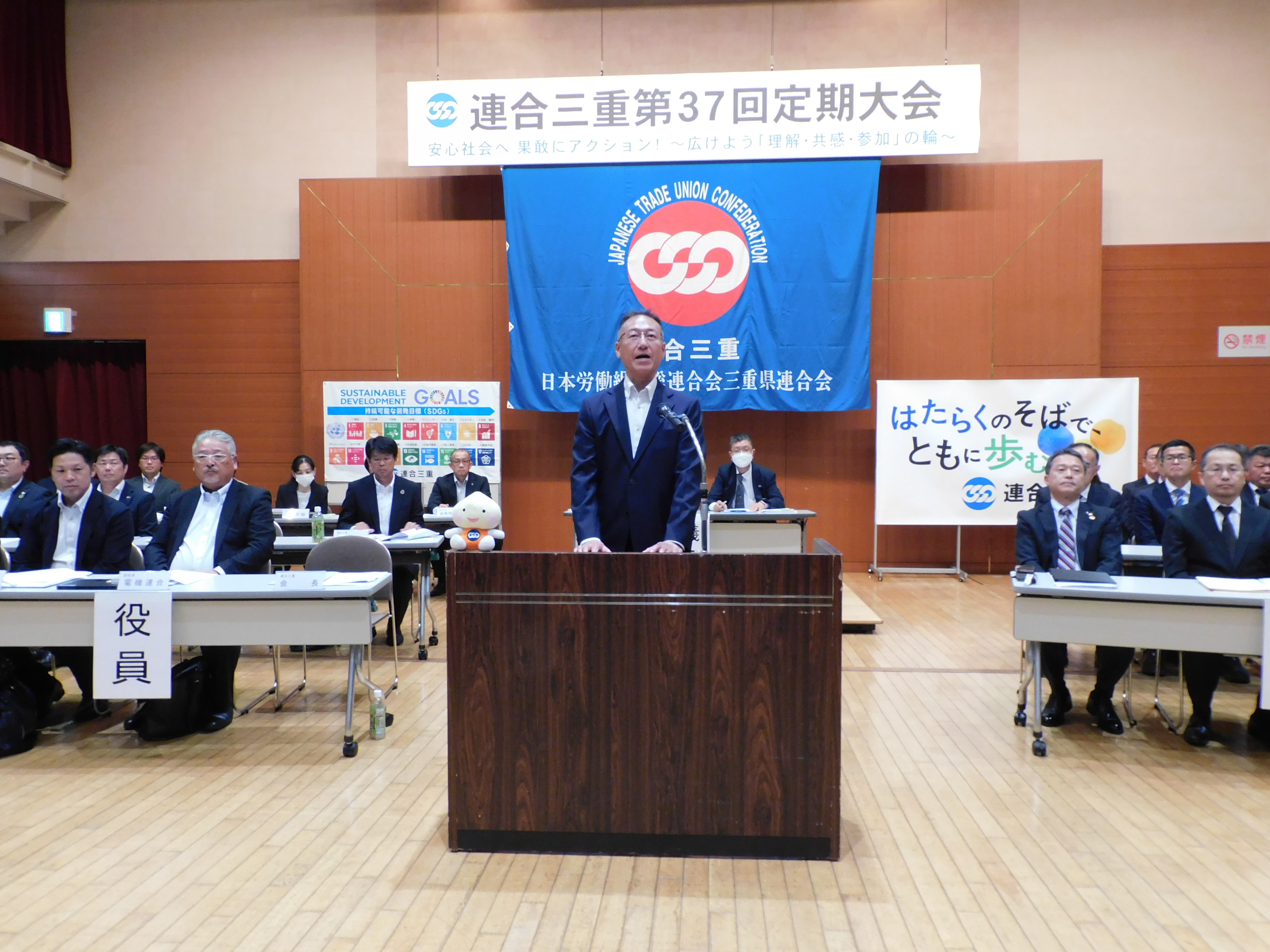 連合三重は10月28日、「安心社会へ 果敢にアクション! ~広げよう「理解・共感・参加」の輪~」をスローガンに第37回定期大会をアスト津「アストホール」で開催しました。