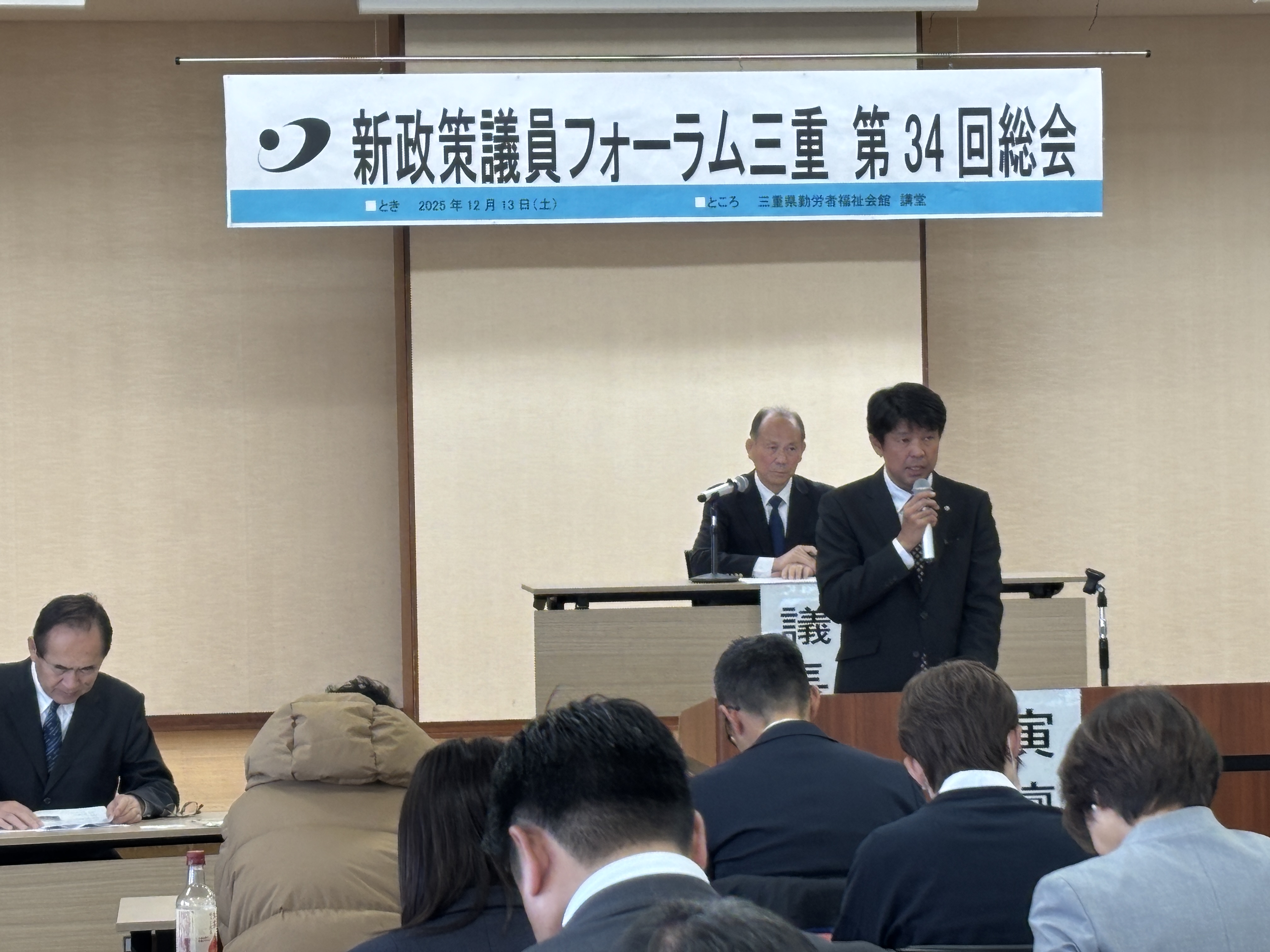 12月13日(土)、三重県勤労者福祉会館において「新政策議員フォーラム三重第34回総会」が開催され、新政策議員フォーラム三重の各級議員や各地協から58名の参加がありました。