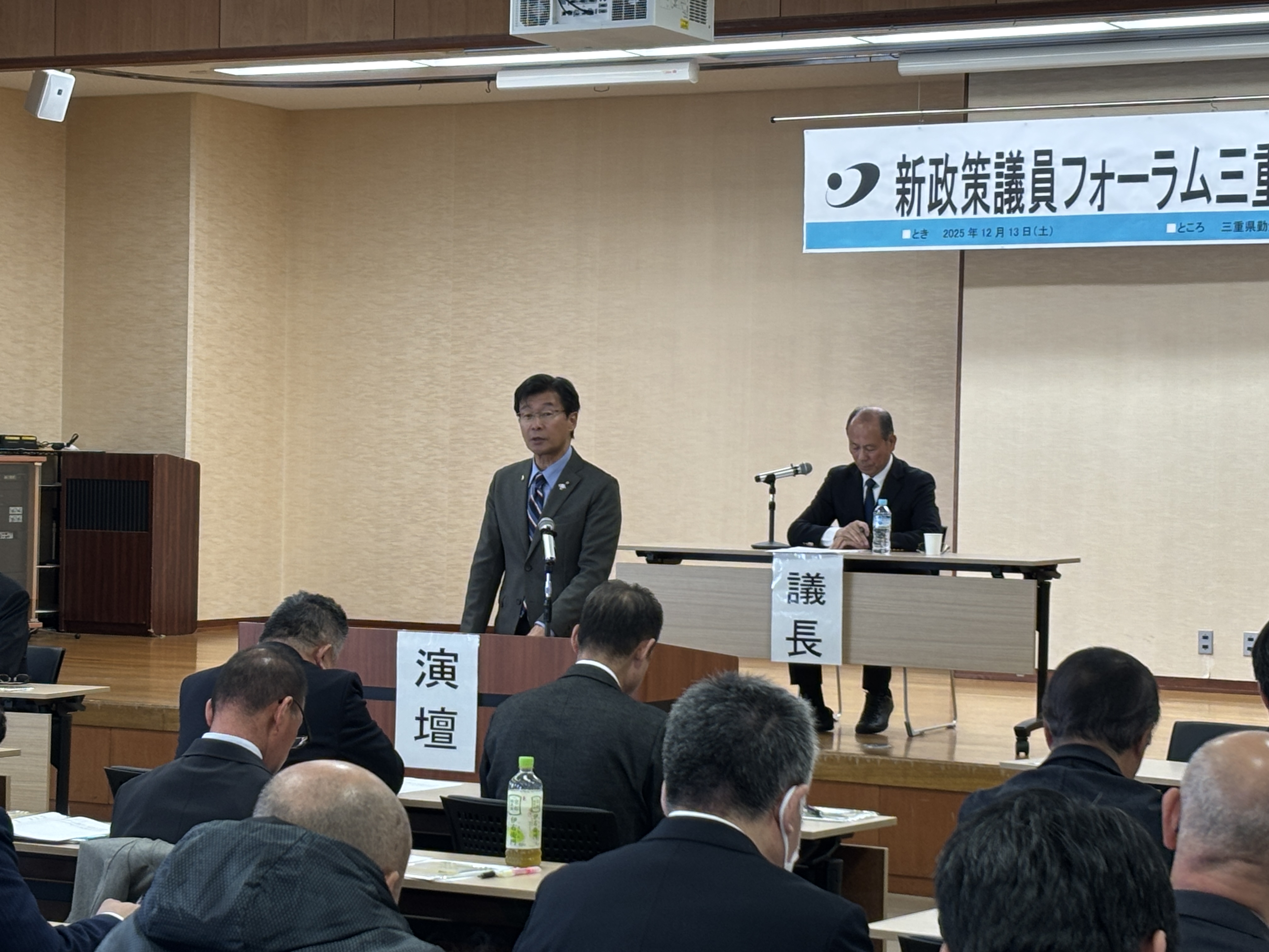 冒頭、藤田宜三会長(三重県議会議員 新政みえ)の挨拶後、番条会長はじめ各顧問より来賓挨拶がありました。