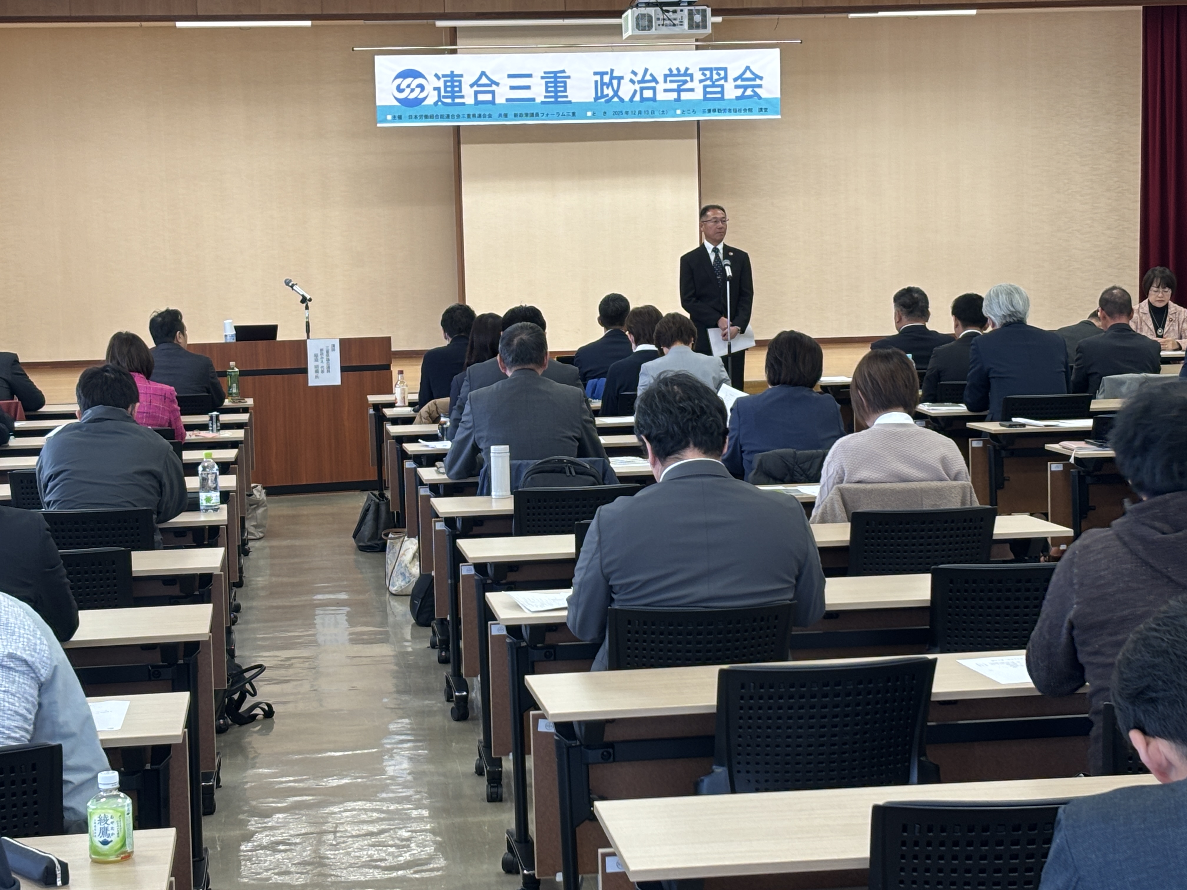 12月13日(土)、三重県勤労者福祉会館において「政治学習会」を開催し、各構成組織や各地協、新政策議員フォーラム三重の各級議員より82名の参加をいただきました。 冒頭、番条会長の挨拶後、三重県議会議員 新政みえ 稲垣昭義代表から、「SNSと選挙」の演題で、本日の目標として「自分のSNSの使い方を決めて今日からスタートする」講演をいただきました。 また、選挙におけるSNSの影響、選挙に勝つために必要なSNSの発信、SNSの活用方法など、具体的な事例を学びました。