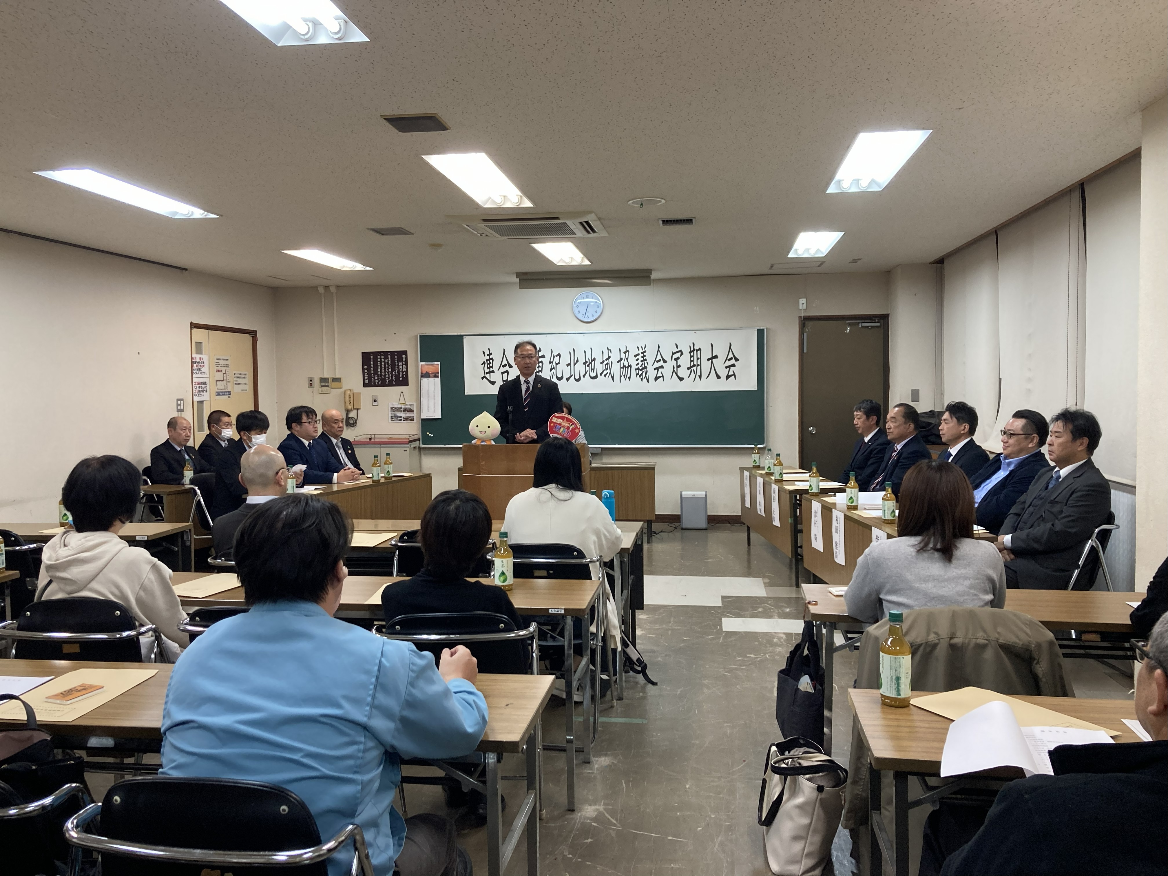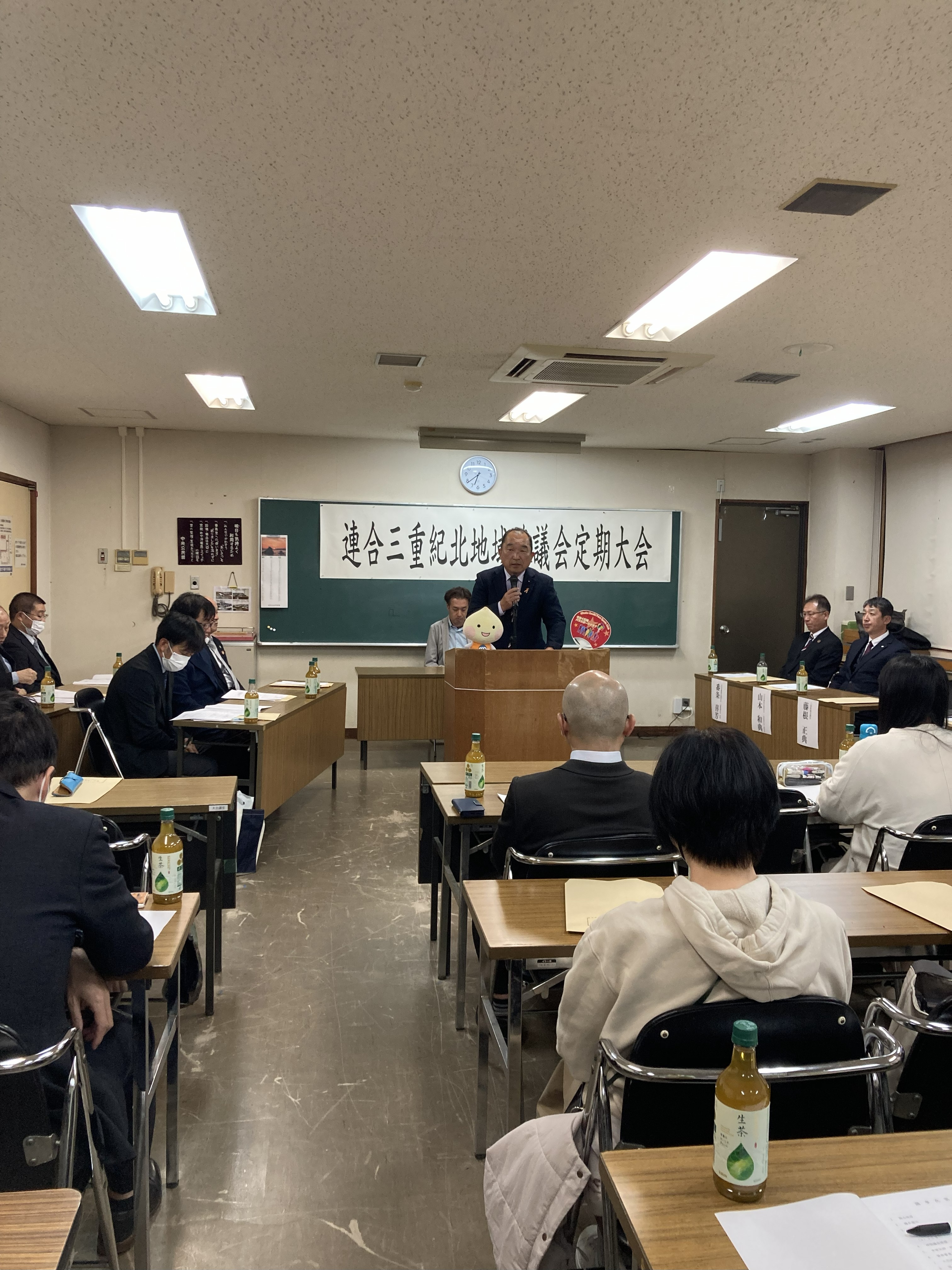 11月18日(火)18時30分から、尾鷲市中央公民館において、連合紀北第35回定期大会を開催しました。連合三重番条会長をはじめ、藤根県議他たくさんのご来賓の皆様にご臨席をいただき、ご祝辞をいただきました。大会では、2025年度活動報告および会計決算が報告された後、2026年度役員、運動方針、予算の各議案すべてが承認されました。今後も「働くことを軸とする安心社会-まもる・つなぐ・創り出す-」の実現に向けて取り組みを進めます。