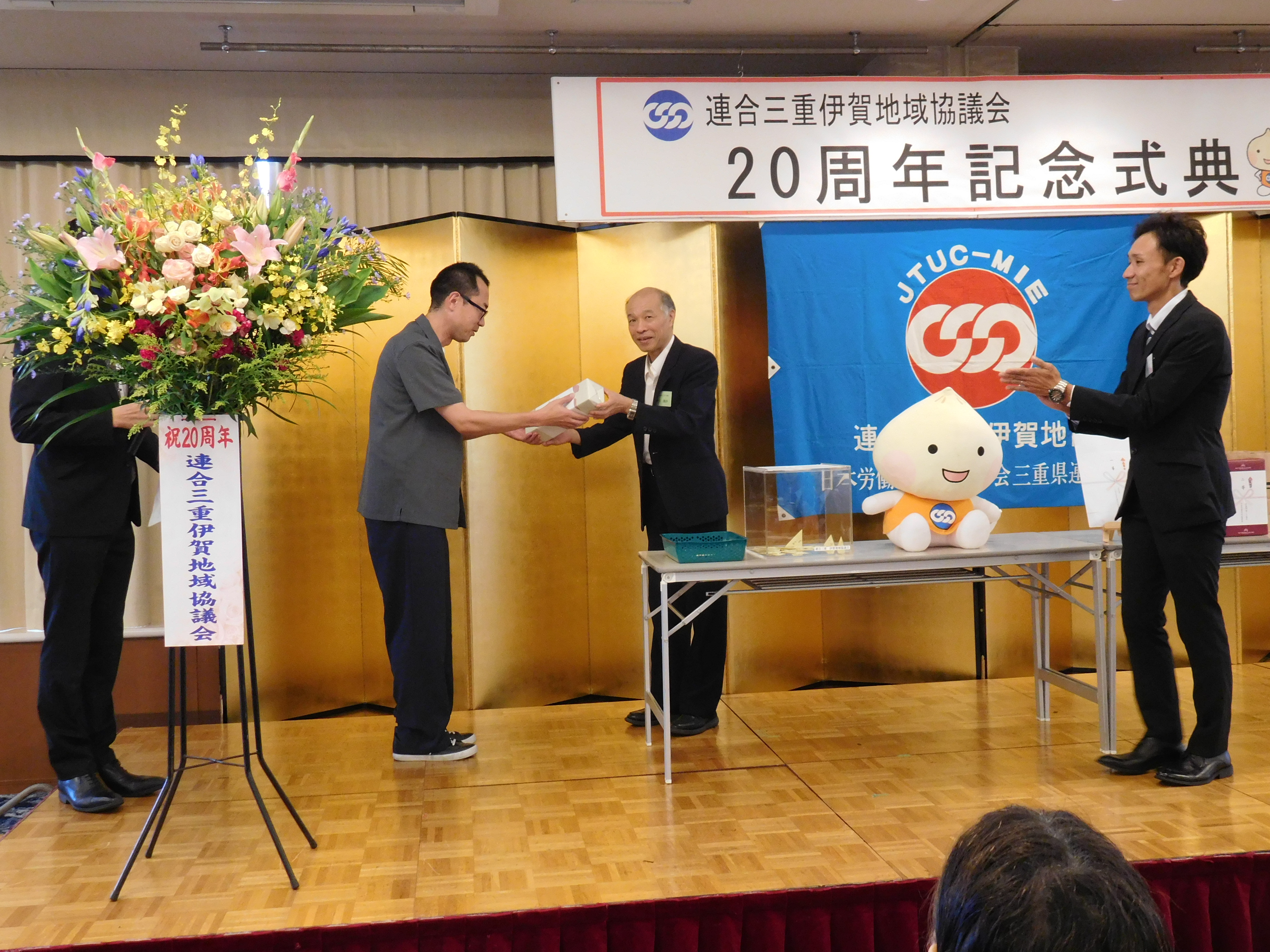 それに伴い、9月27日(土)ヒルホテルサンピア伊賀において、伊賀地域協議会20周年記念式典および記念パーティーを開催しました。構成組合員・来賓、あわせて68名に参加していただき、20周年を喜び合いました。