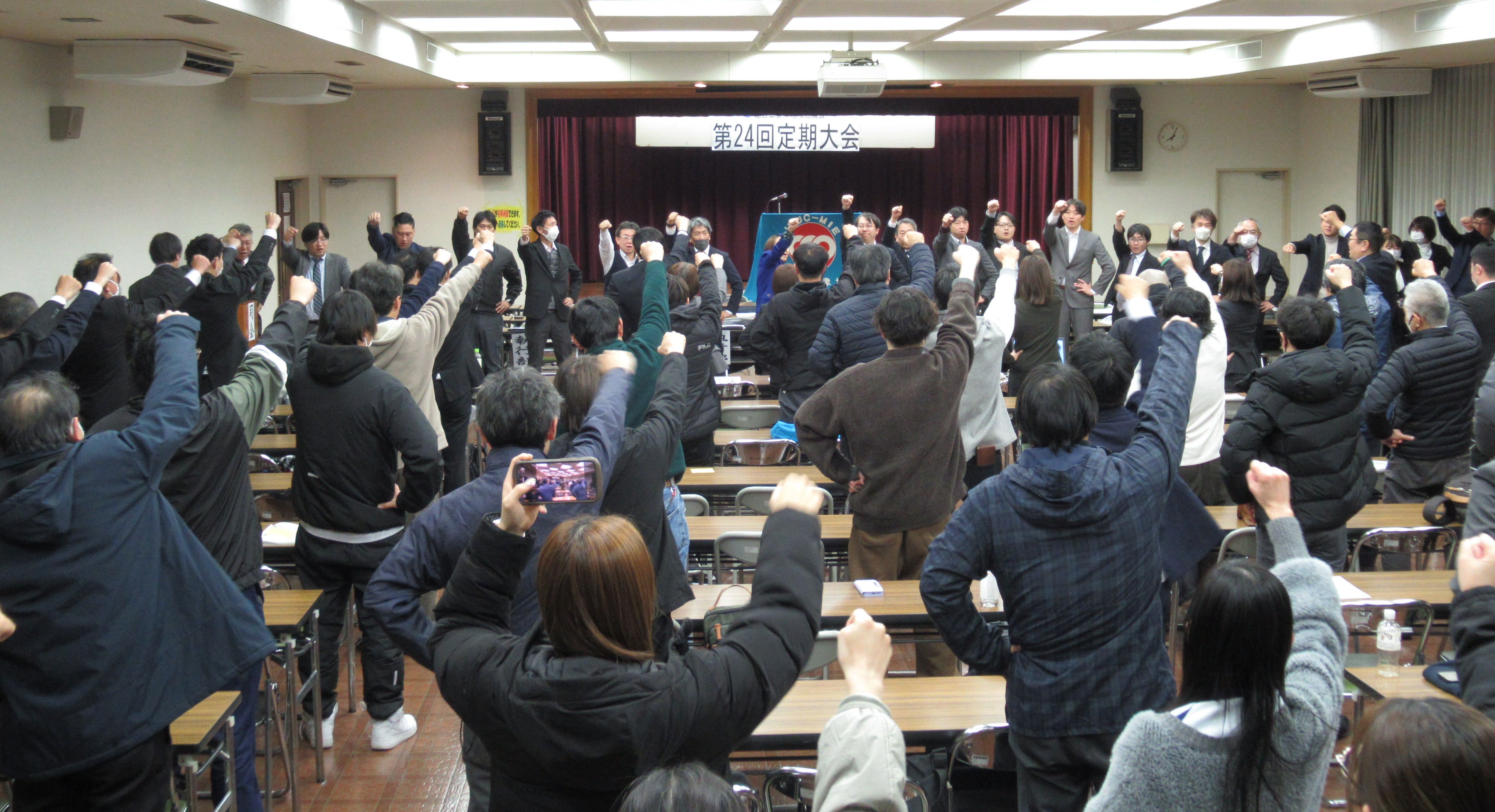 12月6日(金)夕方から、サンワーク津で「第24回定期大会」を開催しました。今大会には代議員79名にご参加いただき、女性参画率は24.58%(前年より2.55%減)となりました。