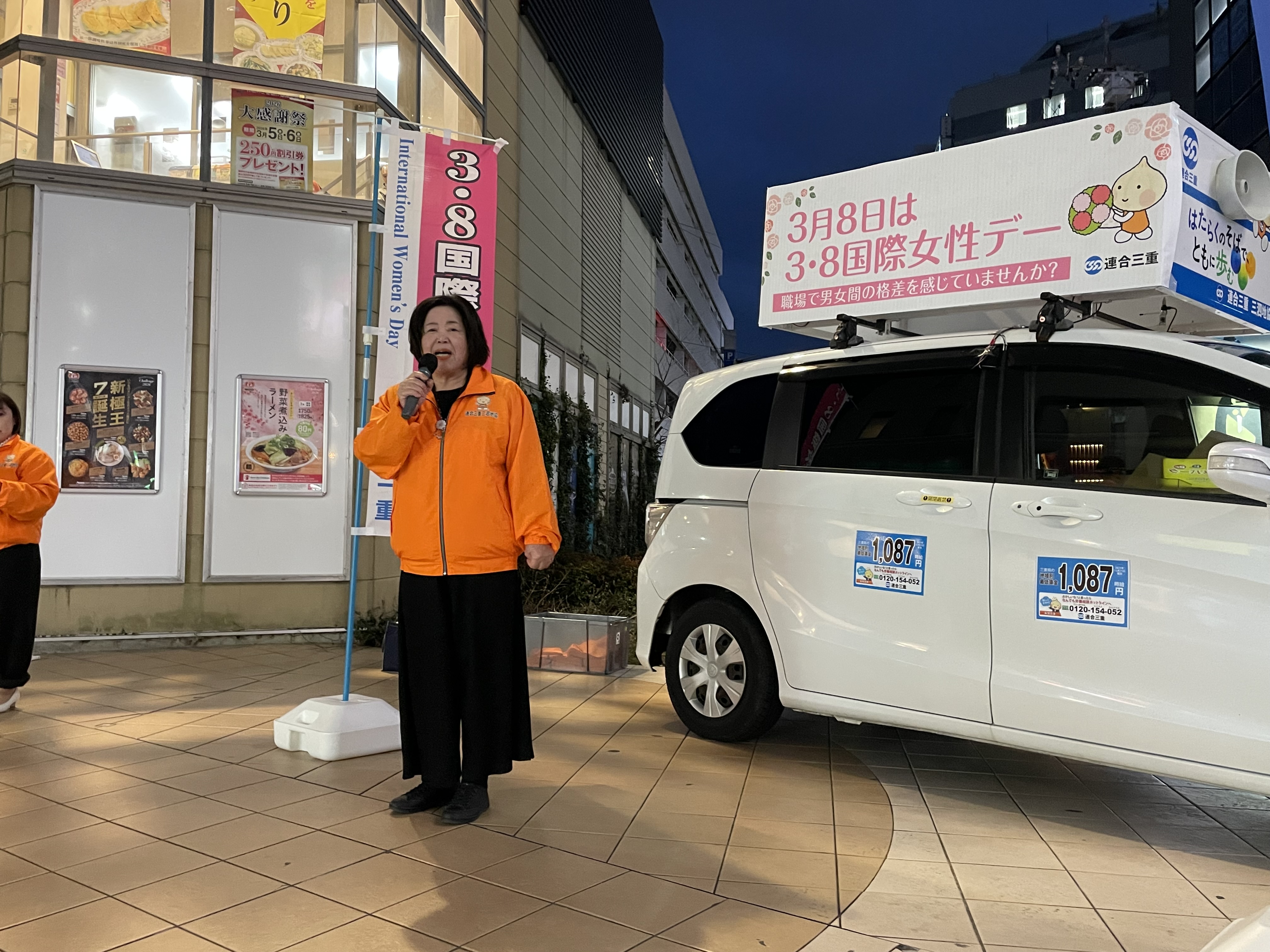 3月6日(金)18時より、近鉄四日市駅ふれあいモールにおいて、連合の日街頭宣伝行動(3.8国際女性デー)を実施しました。
