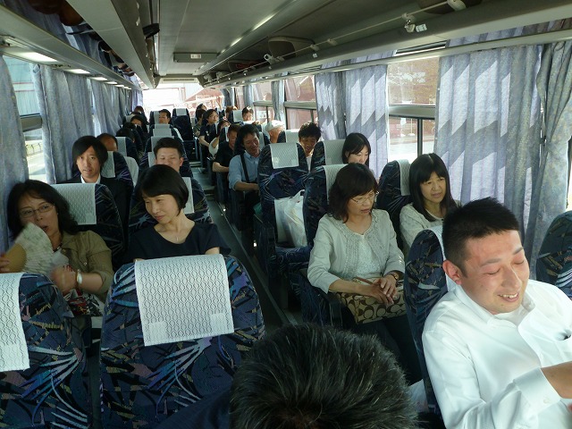 地協加盟単組からの参加者28名は、宇治山田駅前からバスに乗り込み、四日市に向かいました。