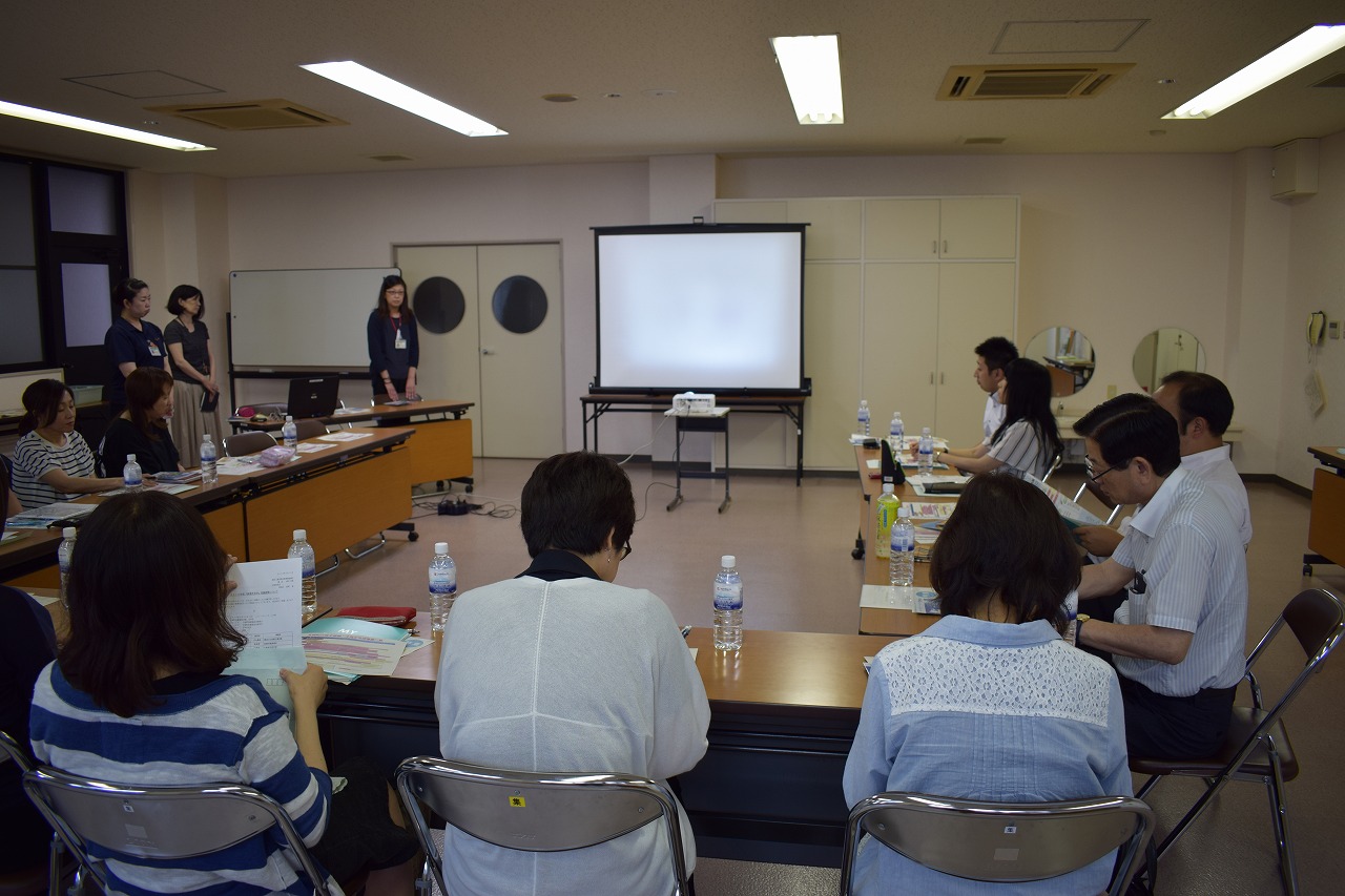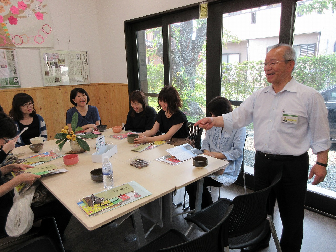 6月20日(木)男女平等月間行事の一環として、女性委員及び四役15名で玉城町保健福祉会館を訪問しました。保健福祉課の室長奥野良子さん、保健師の奥野彩子さんに応対していただき、子どもが生まれる前からの途切れのない支援事業について説明していただきました。おっぱい相談、パパママ教室、子育て支援タイムにこにこ、などなど、充実した事業が多くあり、玉城に住んでいたら、幸せな家族生活を送れるなと感じました。また、旧金森別邸玄甲舎(茶室)の案内を辻村町長自ら、していただきました。町長には、玉城町の歴史、伊勢神宮と玉城町の歴史など、多岐に渡り説明をしていただきました。大変実りのある事業所見学会となりました。