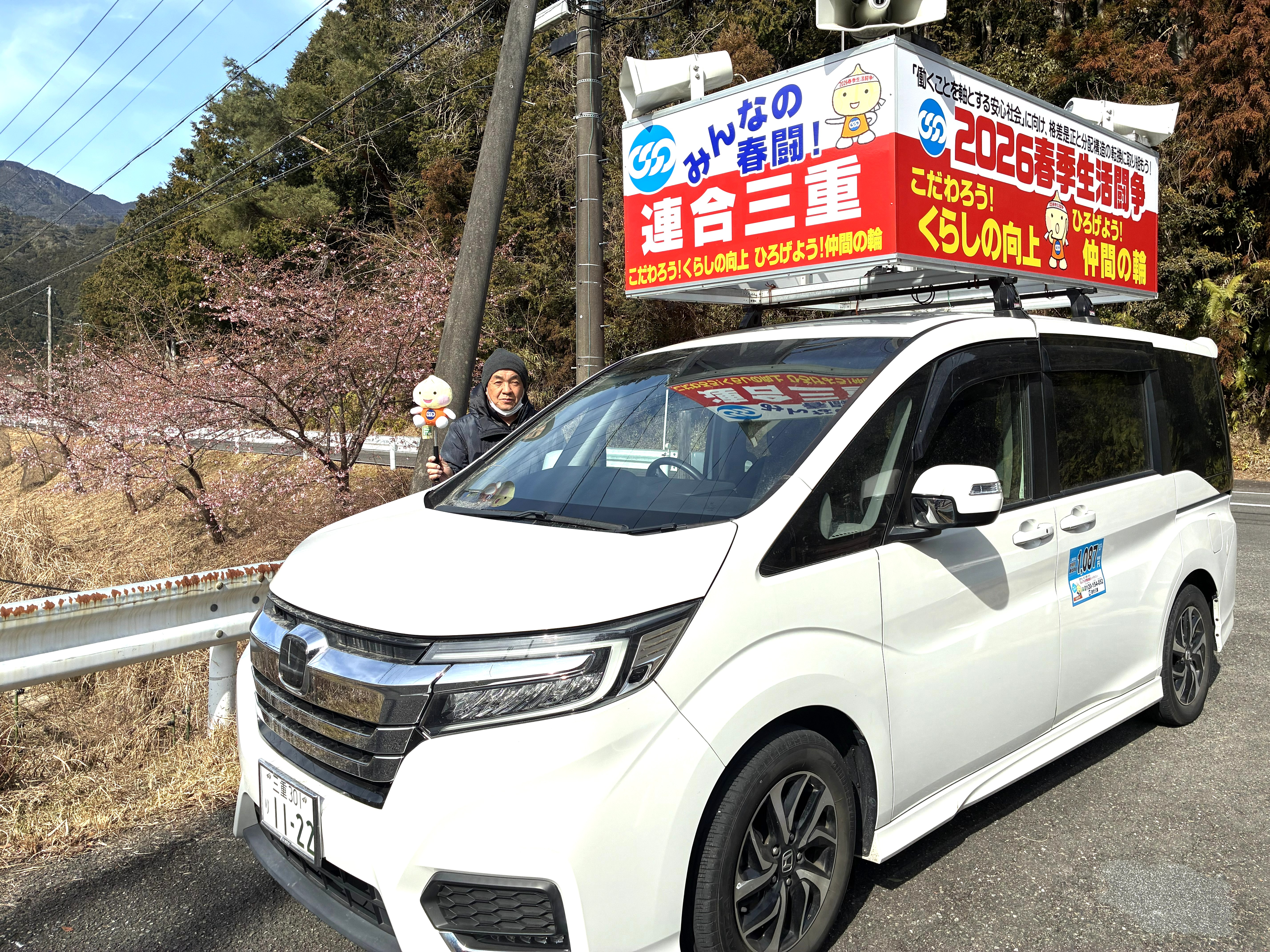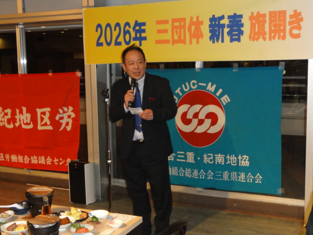 連合と労福協が力を合わせて 三泗地区新春旗びらきを開催