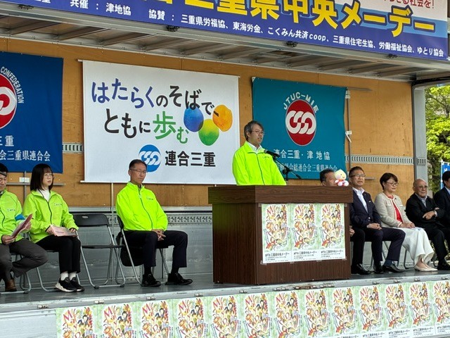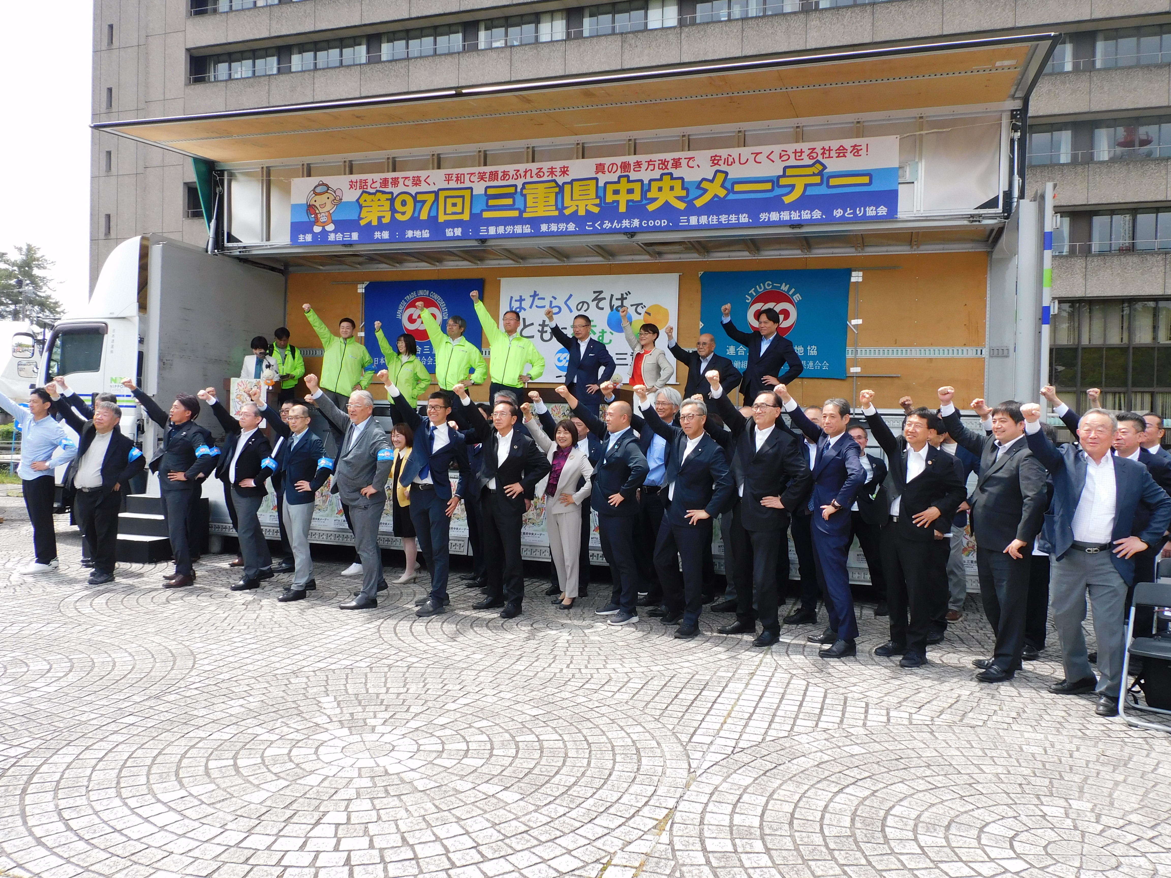 4月25日、津市「お城西公園」において連合三重と津地域協議会の共催による第97回三重県中央メーデーを開催し、組合員約1,200人が結集しました。