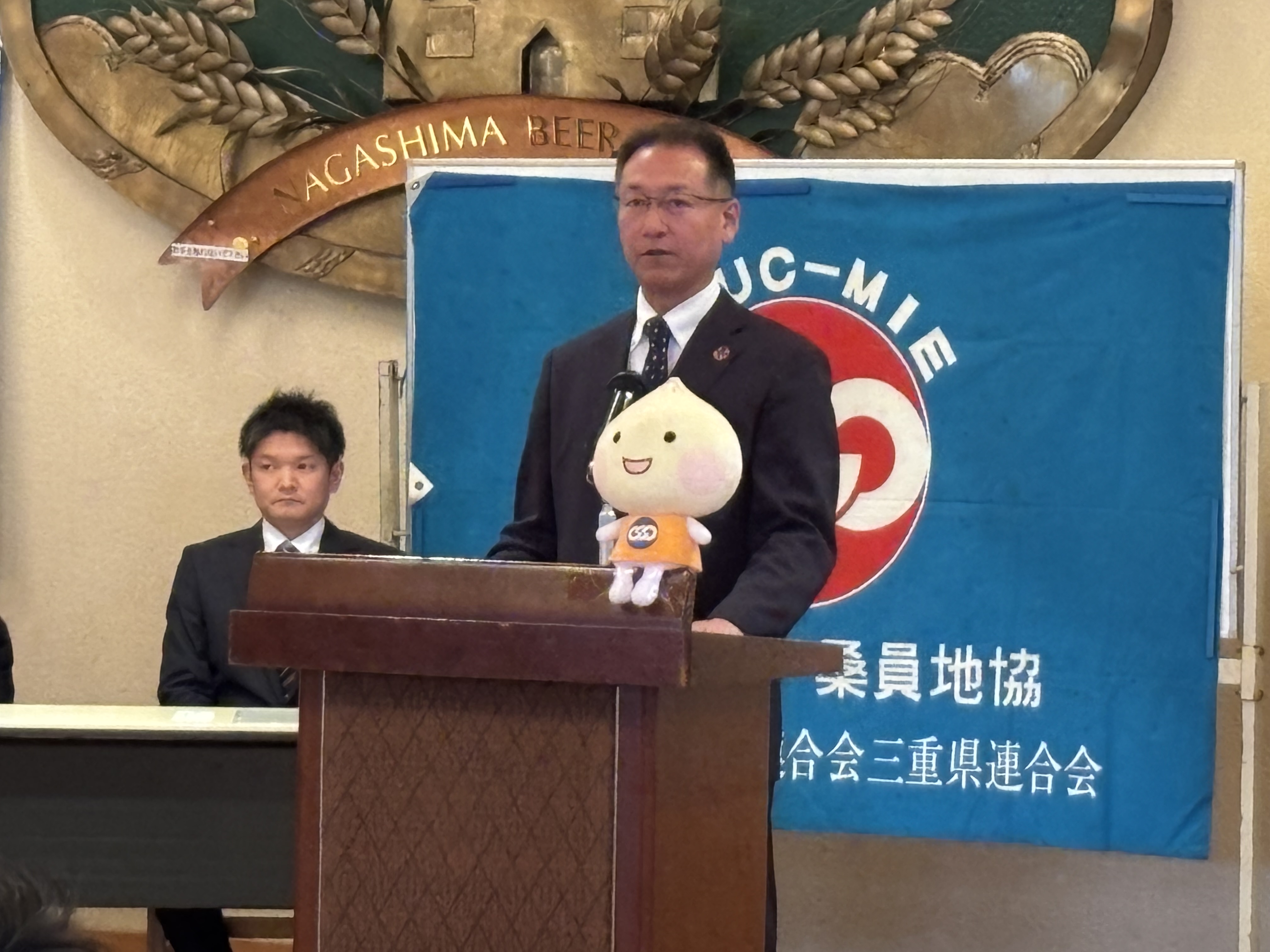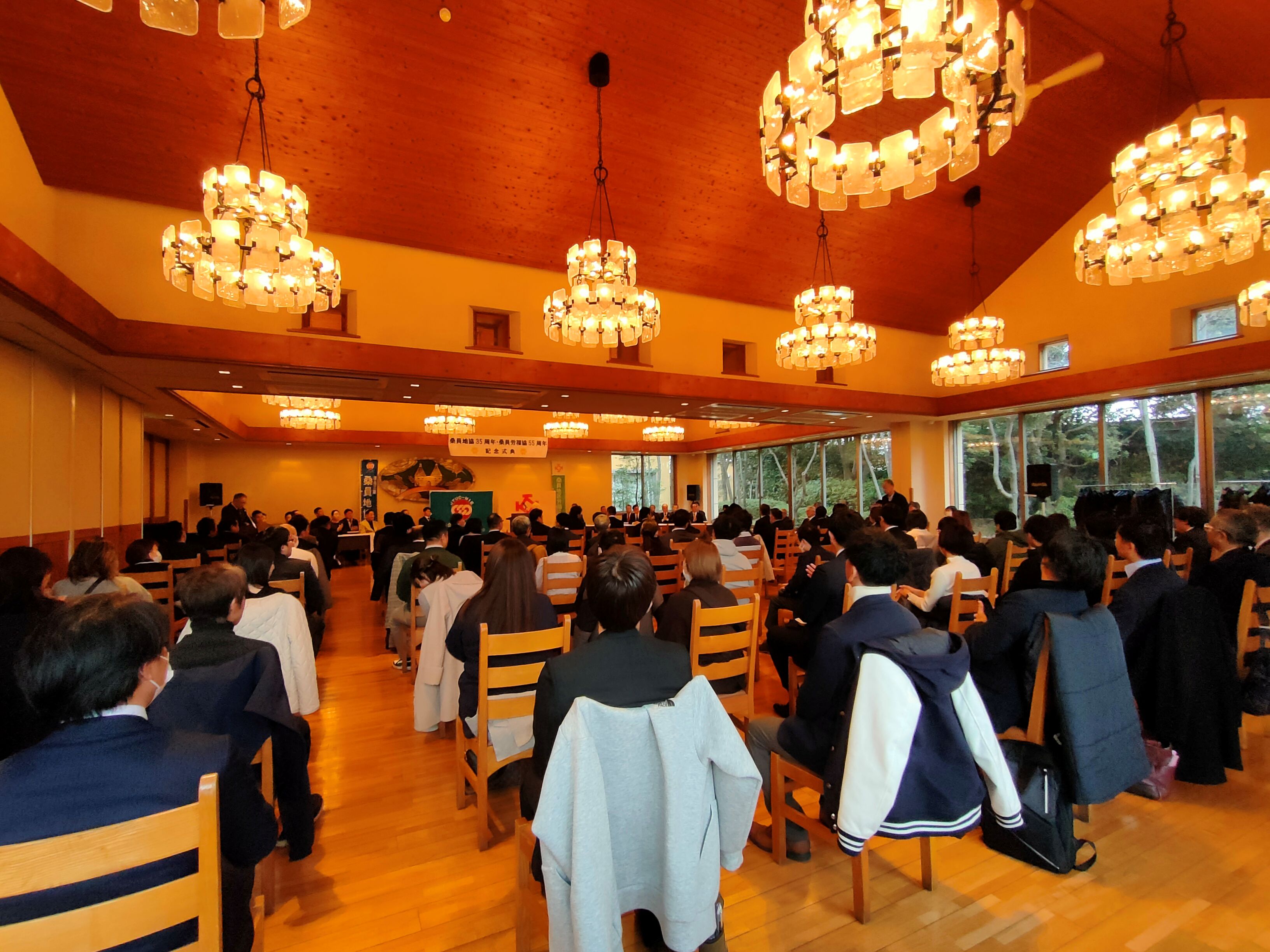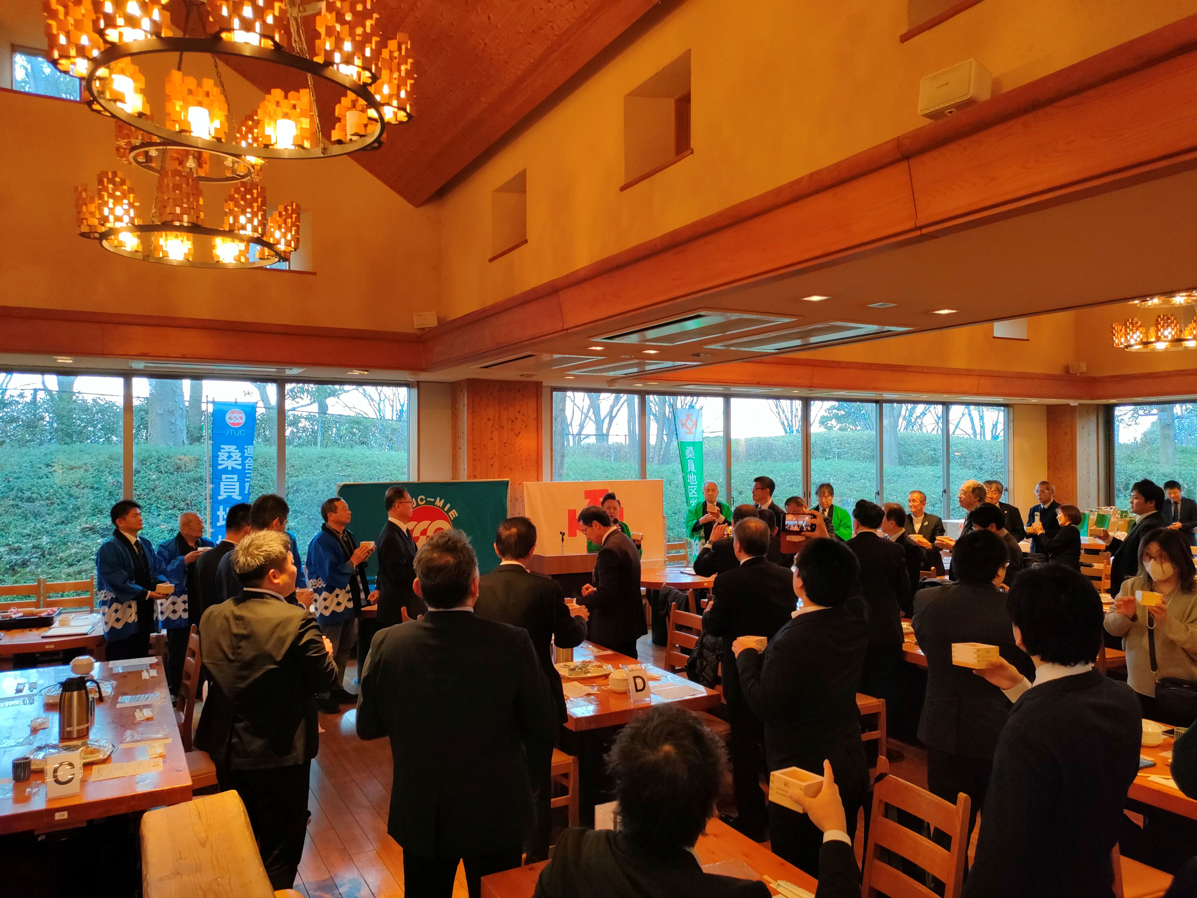 1月24日(土)15時30分より、長島リゾート「なばなの里」長島ビール園において、周年記念式典ならびに記念パーティーが開催されました。今年は、桑員地協35周年、桑員地区労福協55周年の記念すべき節目を迎えることから、例年開催している桑員地区旗びらきを、周年記念式典・記念パーティーとして開催いたしました。