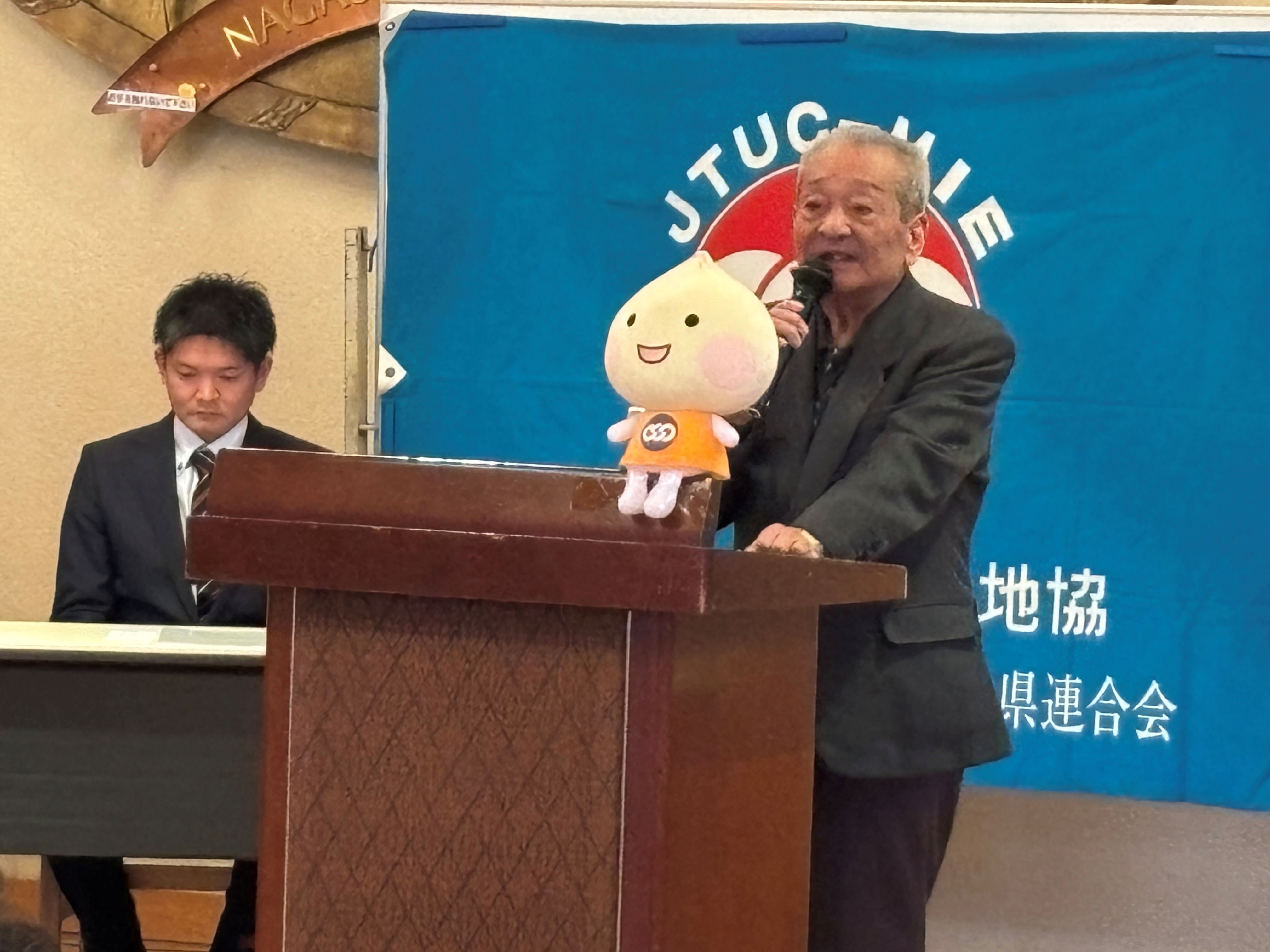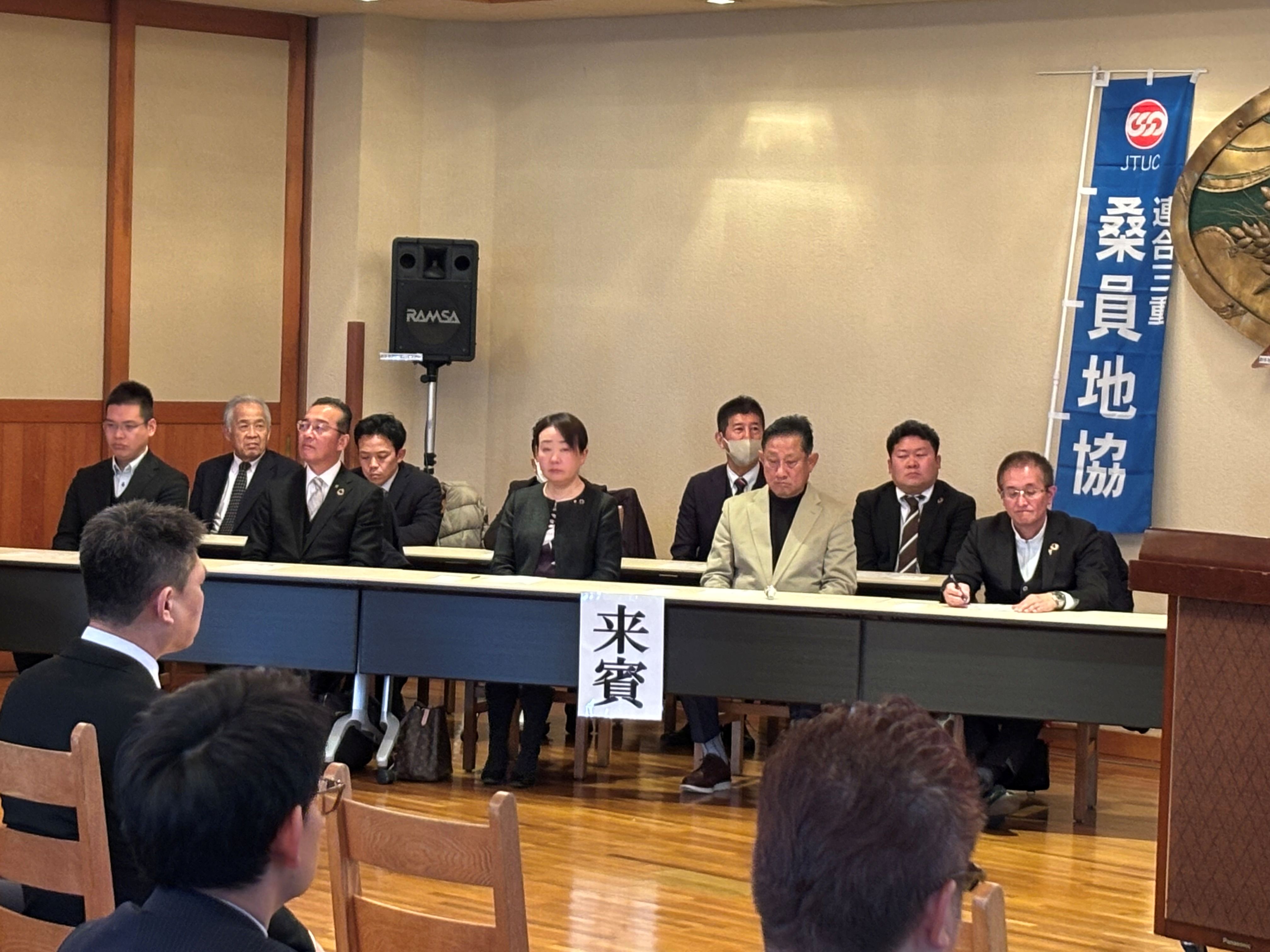 式典では、主催者である伊藤議長のあいさつの後、ご来賓としてご臨席を賜りました連合三重番条会長、伊藤 徳宇 桑名市長、岡田 克也 様はじめ多くの皆様にご祝辞をいただきました。