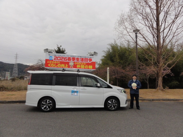 2月10日(水)午後、「働くことを軸とする安心社会」の実現に向け、企業の規模や雇用形態の違い、男女の違いに関わらず賃上げすることが当たり前の社会になるよう、街宣車による音源流しで地域住民に広く訴えました。