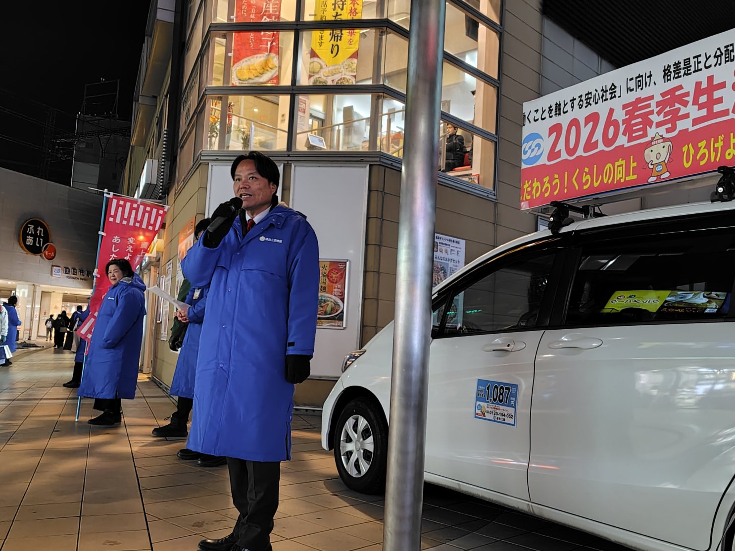 2月9日(月)18時から1時間、近鉄四日市駅ふれあいモールにおいて、連合の日街頭宣伝行動(2026春季生活闘争)を実施しました。