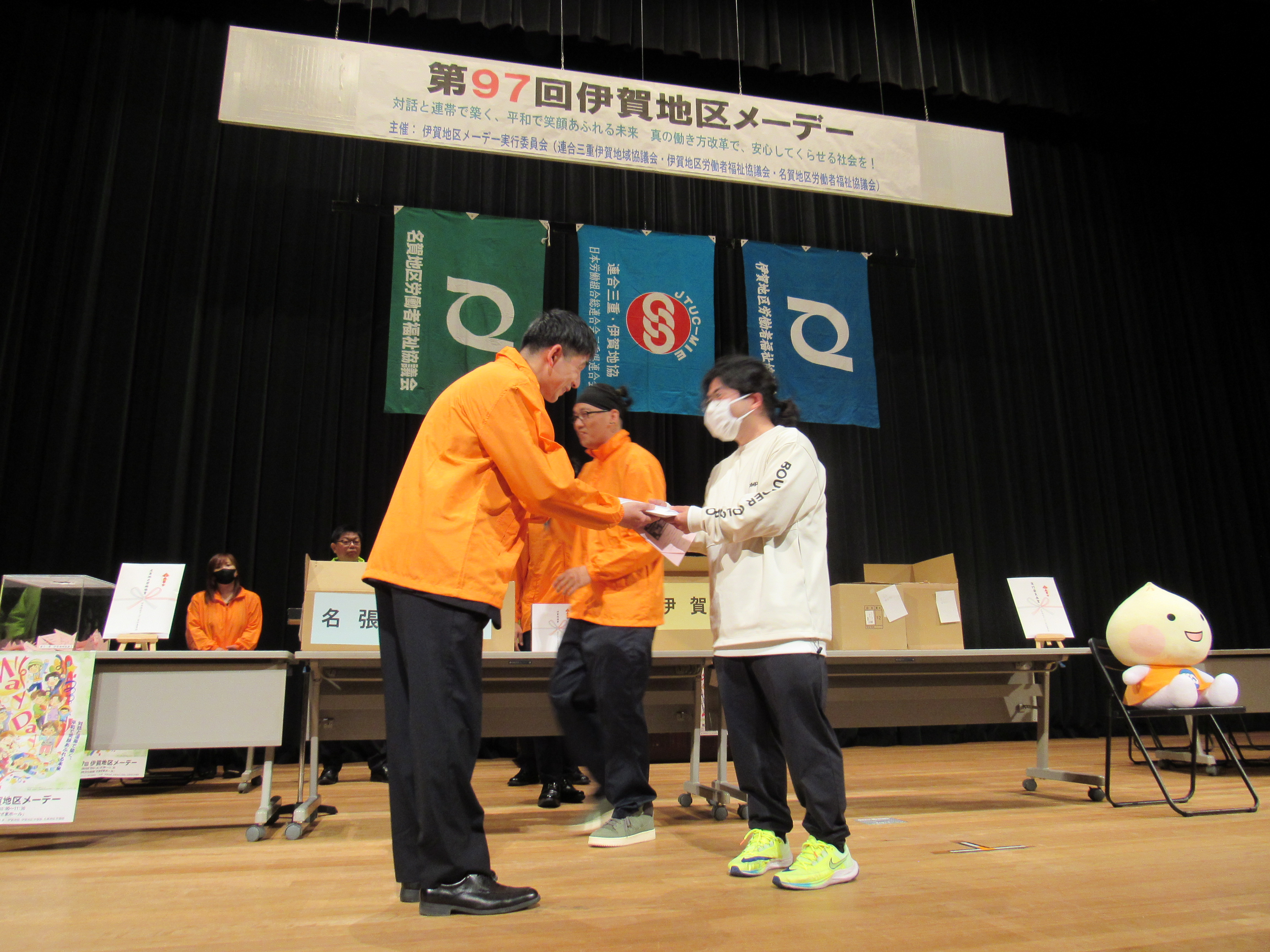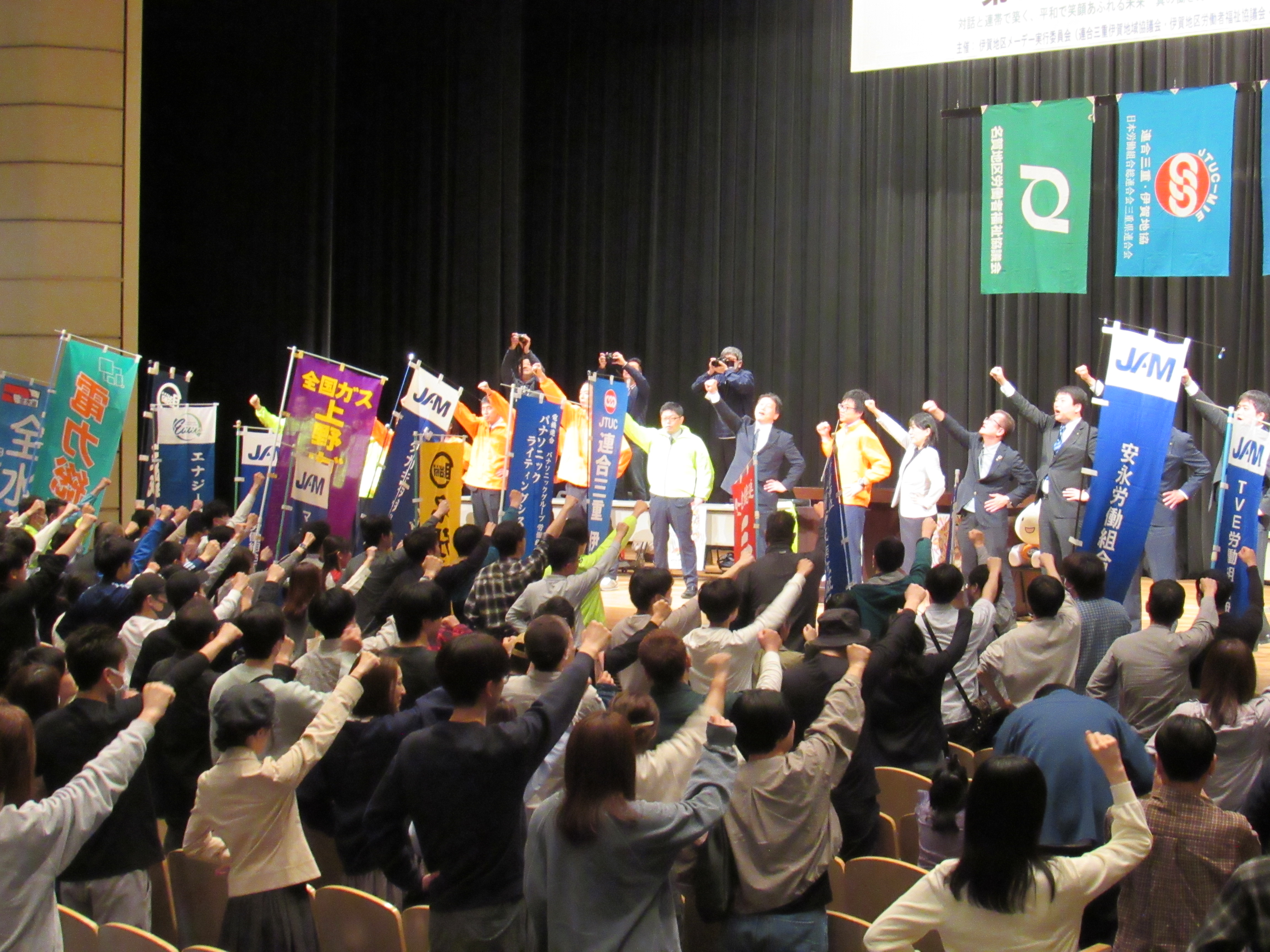 伊賀地区メーデー実行委員会(連合三重伊賀地域協議会・伊賀地区労働者福祉協議会・名賀地区労働者福祉協議会)は、4月18日(土)10時から伊賀市文化会館「さまざまホール」において、組合員とそのご家族約440名が参加し、第97回伊賀地区メーデーを開催しました。